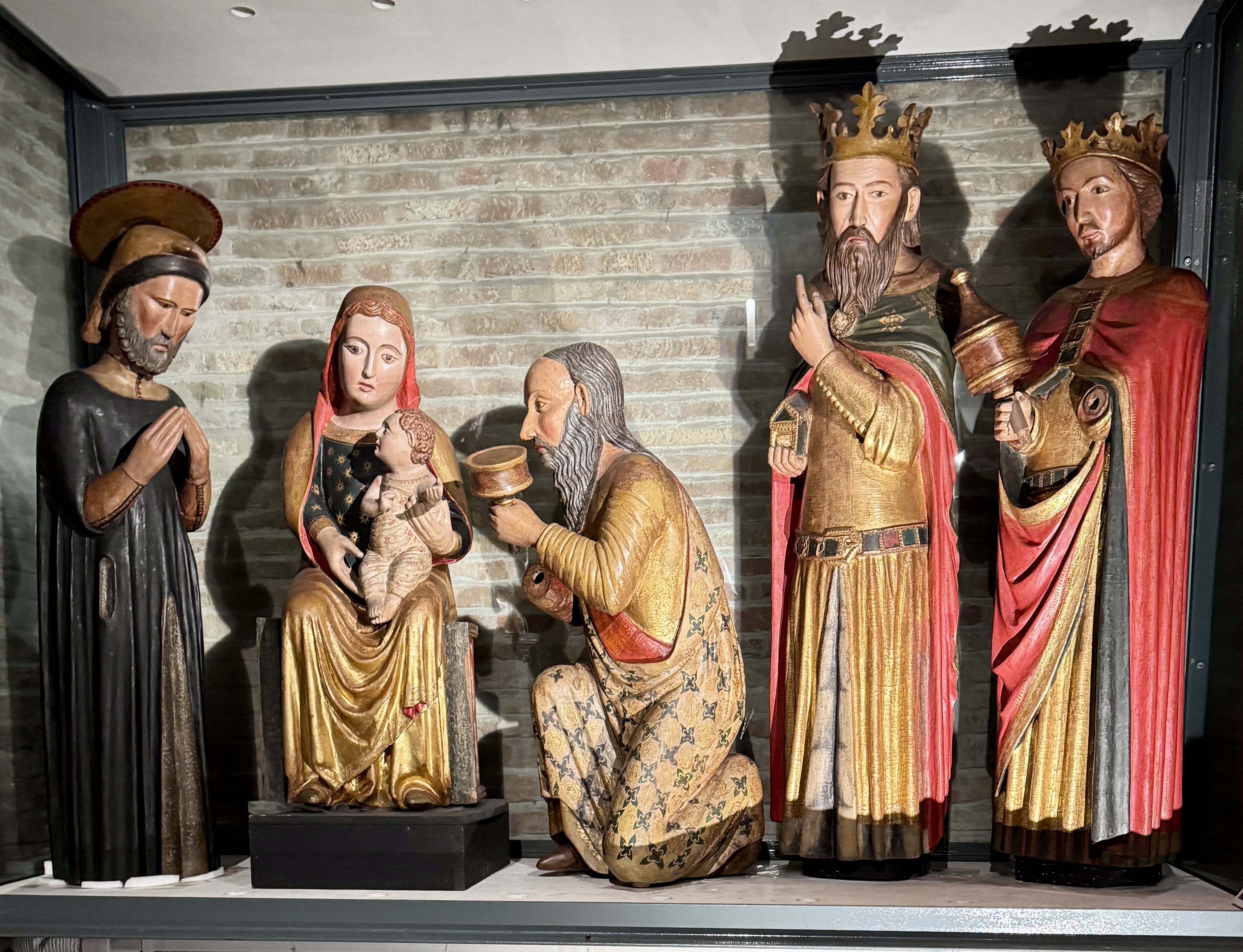 Und damit zur bildenden Kunst: Die Jury wählte zuerst sechs Standorte im Rathaus und ebensoviele Berger Kunstschaffende aus, die beauftragt wurden, Werke für das Rathaus vorzuschlagen. Ein Wunsch der Jury war es, obendrein ein “dezentrales” Kunstwerk zu haben, das sich durch das ganze Haus ziehen sollte. Birgit Berends-Wöhrl schuf darauf einige Figuren, die sich redend, balancierend oder Kopf stehend vom Eingangsbereich über den Aufzug bis zum Trauzimmer durch das Rathaus bewegen. Das Werk wurde ebenfalls mit dem Kulturpreis der QUH 2025 geehrt: https://quh-berg.de/das-grosse-a/