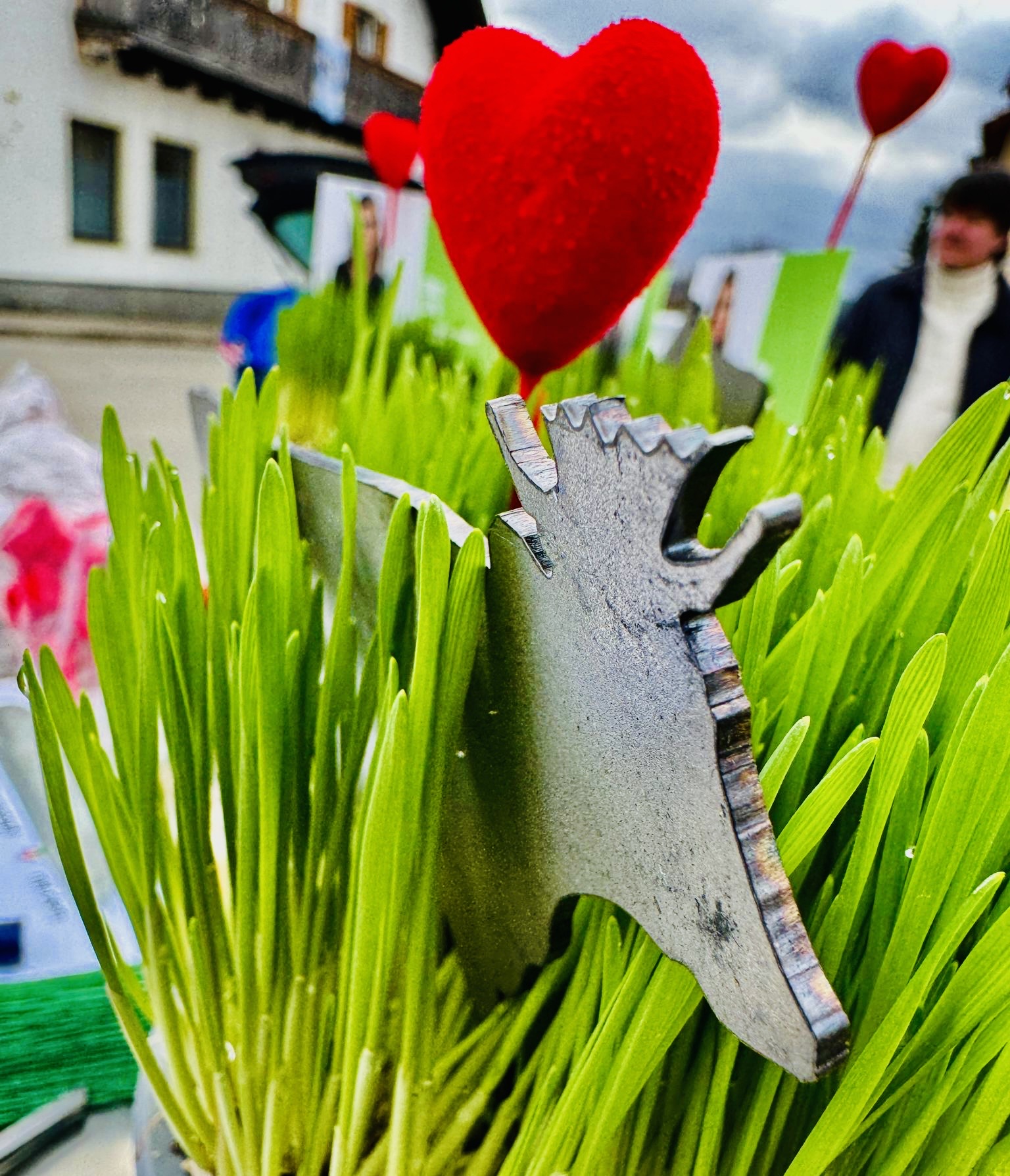 Die QUH blieb auch diesmal ihrem Stil treu und verteilte ihre legendären QUH-Weiden, mobile Berger Grundstücke mit Katzengras, das einzige Wahglkampfgeschenk, dass wächst und  – anders als Kugelschreiber, Schlüsselanhänger, Bierfiuizl – für Mensch und Tier gleichermaßen nahrhaft und nützlich ist. Darin steckt unsere unzerstörbare Metall-QUH, ein begehtes Berger Sammelobjekt.