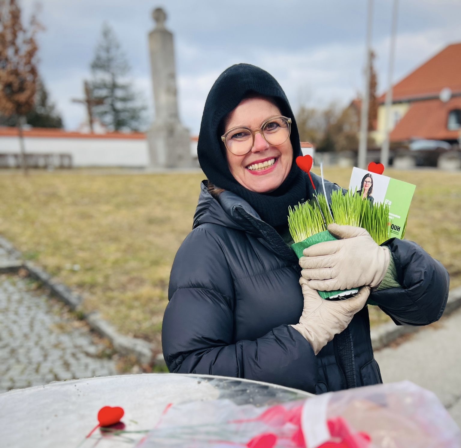 Bürgermeisterkandidatin Elke Link verteilt die legendären QUH-Weiden
