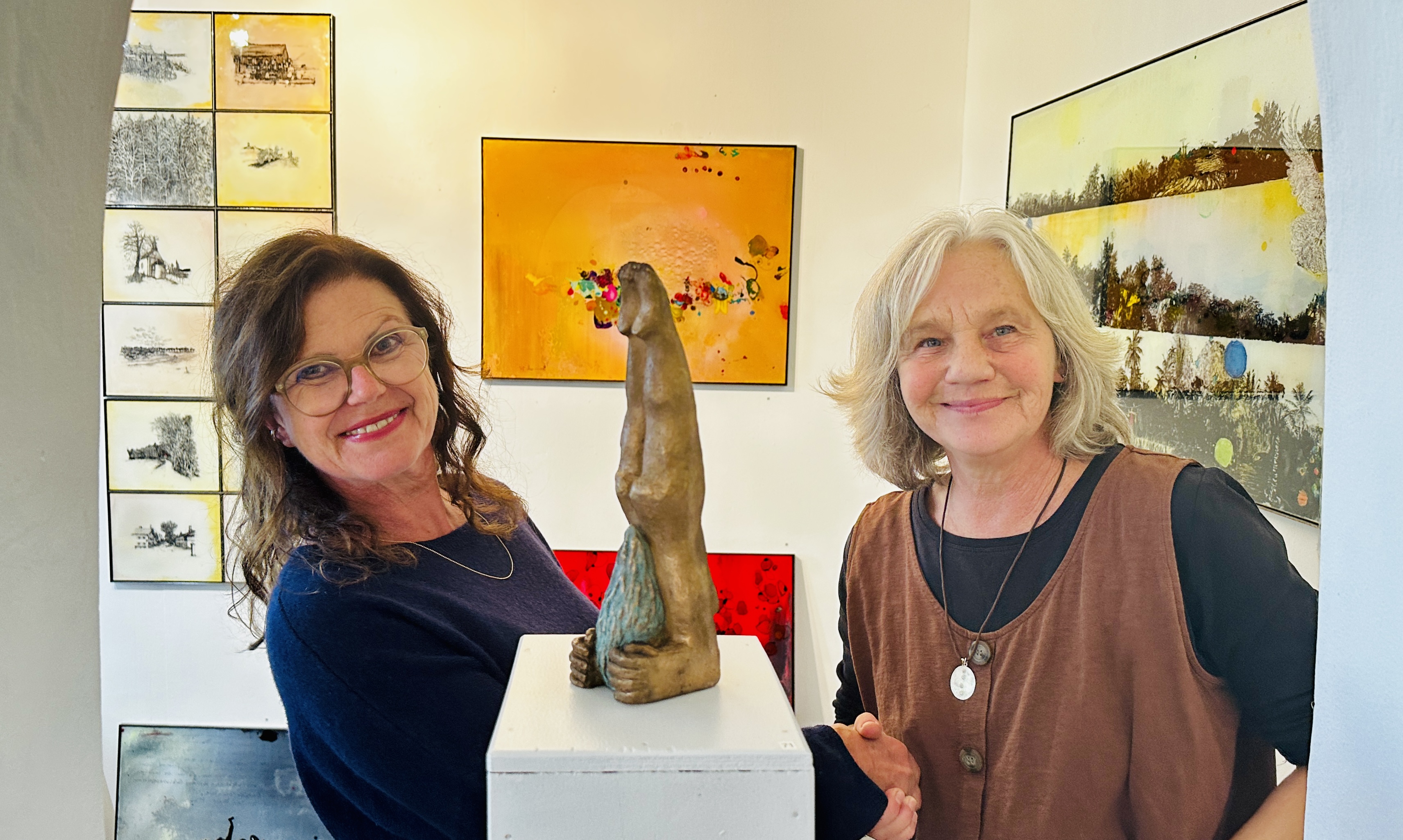 Birgit entschied sich für eine Skulpturenreihe (plus kleinem Kobold) von alltäglichen Menschen in friedlich entspannter Existenz, die das Rathaus auf allen Ebenen bevölkern werden. Für die QUH Anlass genug, ihr den diesjährigen “QUH-Preis der Ateliertage des Jahres 2025” zu überrreichen, der wie immer aus einem warmen Händedruck von Elke Link besteht: