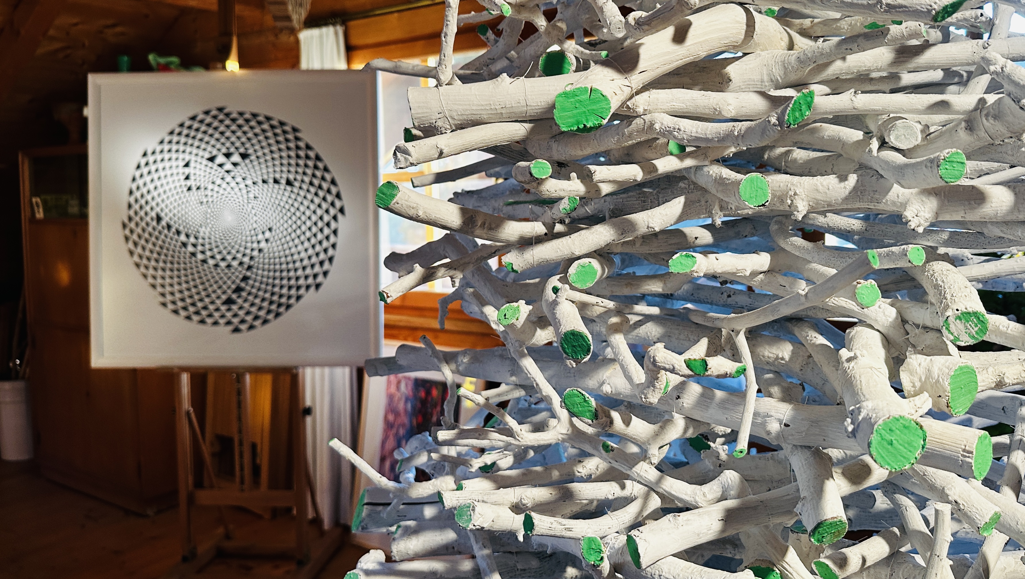 Dazze Kammerl in Farchach erinnerte sich hingegen an seinen früheren Beruf als Schneidermeister und vernähte einen riesigen Haufen aus Zweigen zu einer fröhlich luftigen Skulptur..