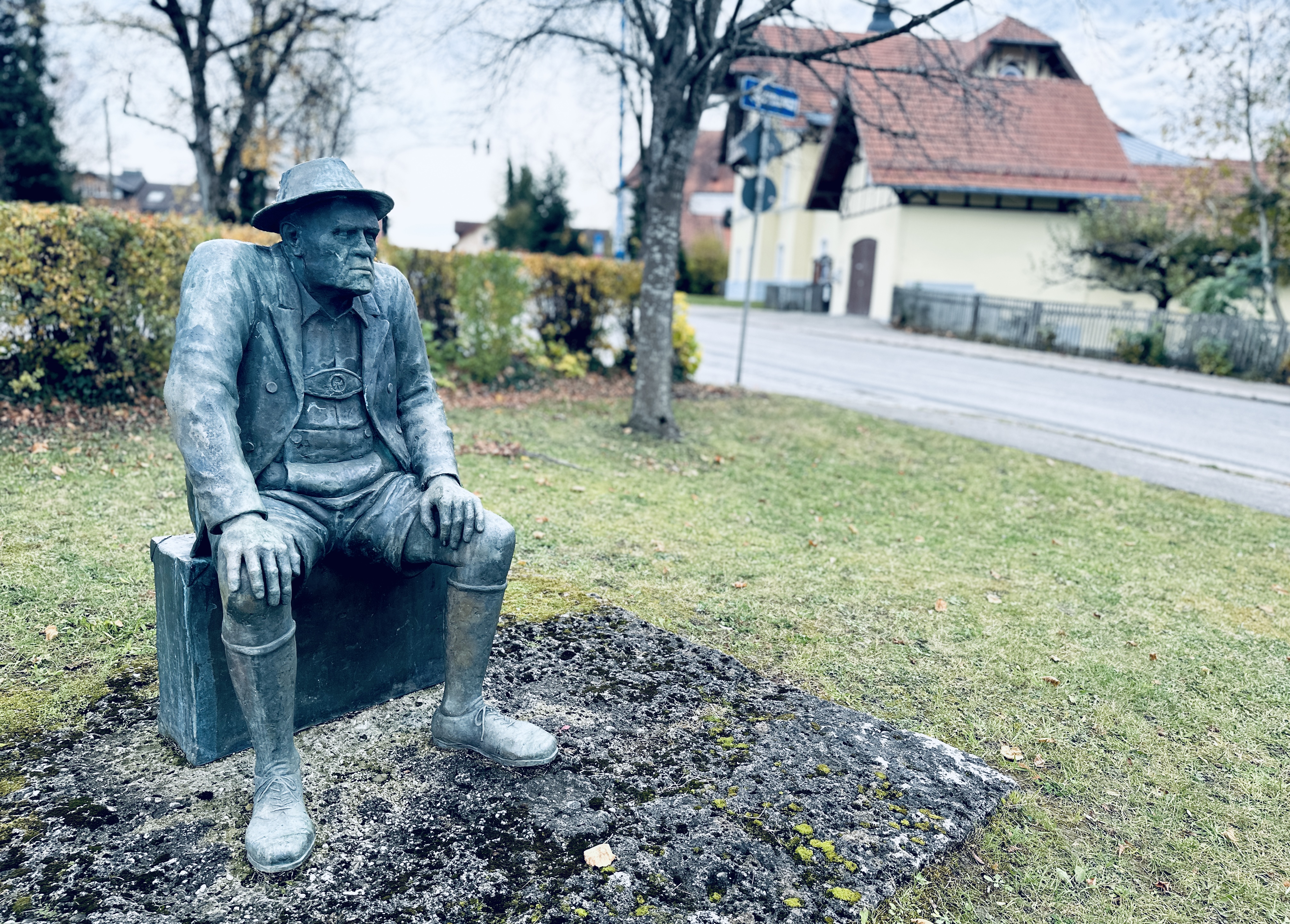 Geschaffen hat dieses wahrhaft ikonische Werk der in Starnberg lebende Bildhauer Max Wagner 1994. Es beruht auf einer Photographie, das den im Exil lebenden Berger Dichter beim Heimatbesuch vor einer mächtigen Linde zeigt: