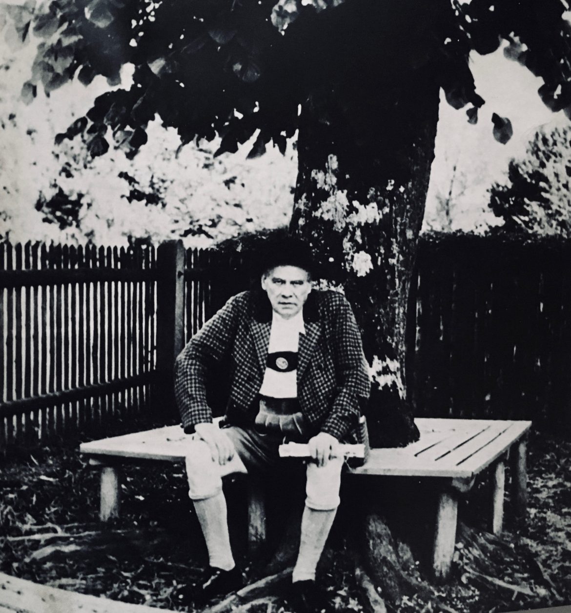 Oskar Maria Graf im Jahr 1960 vor der Aufkirchner Linde