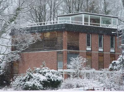 Das Häuschen “mit Dachreiter und Astdekor” steht nahe des Zieglerweges im Garten der sogenannten “Weber-Villa”, die als eines der wenigen im Bauhaus-Stil errichteten Gebäude in Oberbayern gilt und von dem Architekten Gerhard Weber 1956 für seine eigenen Bedürfnisse erbaut wurde. Da Gerhard Weber viel arbeitete, aber nicht gerne kochte, besteht sie zu zwei Dritteln aus einem Büro, enthielt aber nur eine kleine Not-Küche, was dem Nachbesitzer, einem nicht ganz unbekannten deutschen Ex-Nationalspieler, etwas unpraktisch vorkam. Ein Interview mit einem Nachfahren von Gerhard Weber, der noch bei Mies van der Rohe studiert hatte, findet sich im QUH-Blog hier: https://quh-berg.de/die-weber-villa-in-allmannshausen-64958856/.