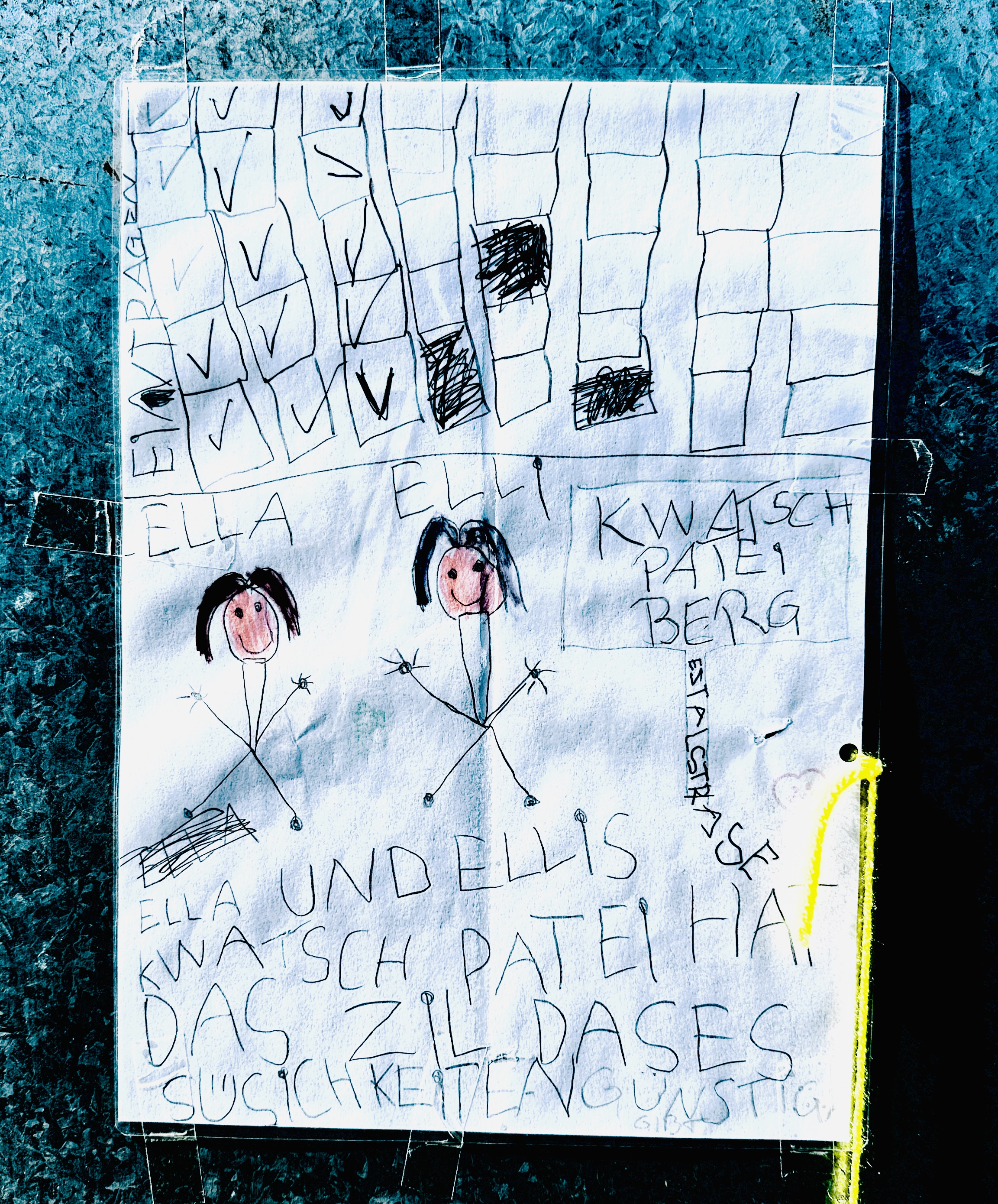 In keiner uns bekannten Gemeinde wütete der Plakatwahlkampf so wie in unserem Berg. Hängen anderswo drei, vier Plakate an der Straße sind es bei uns an jedem Laternenpfahl so viele. Morgen ist Wahl, heute gibt es erste Umfrageergebnisse … und eine neue Partei: Die “Kwatsch Patei Berg”, die sich das “Zil” gesteckt hat, “das es Süsichkeiten günstig”.