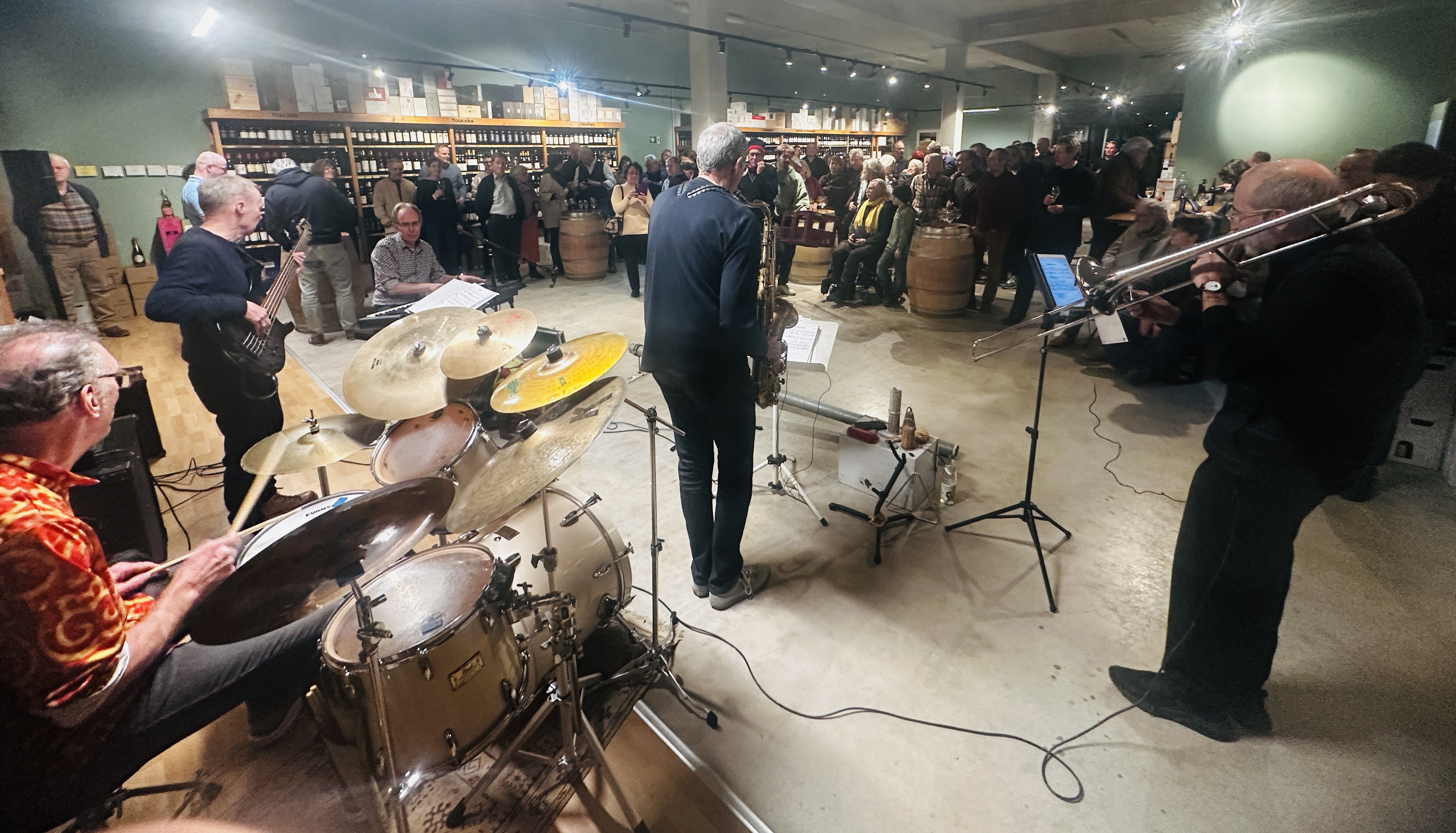 Schon am Freitag hatten die Veranstaltungen mit einer weiteren Premiere begonnen. Der Kulrurverein hatte zum ersten Mal gemeinsam mit dem Weinladen “World of Wine” in Höhenrain zu einem Jazzkonzert mit der Starnberger Band Justyn Tyme geladen. Auch diese Veranstaltung war ausverkauft. Es hätten allerdings noch mehr Menschen und ein paar mehr Stühle in den Saal gepaßss. Aber auch hier – wie im neuen Rathaus – wurden ja erst erste Erfahrungen gesammelt. Und auch hier war sie wieder zur Stelle: