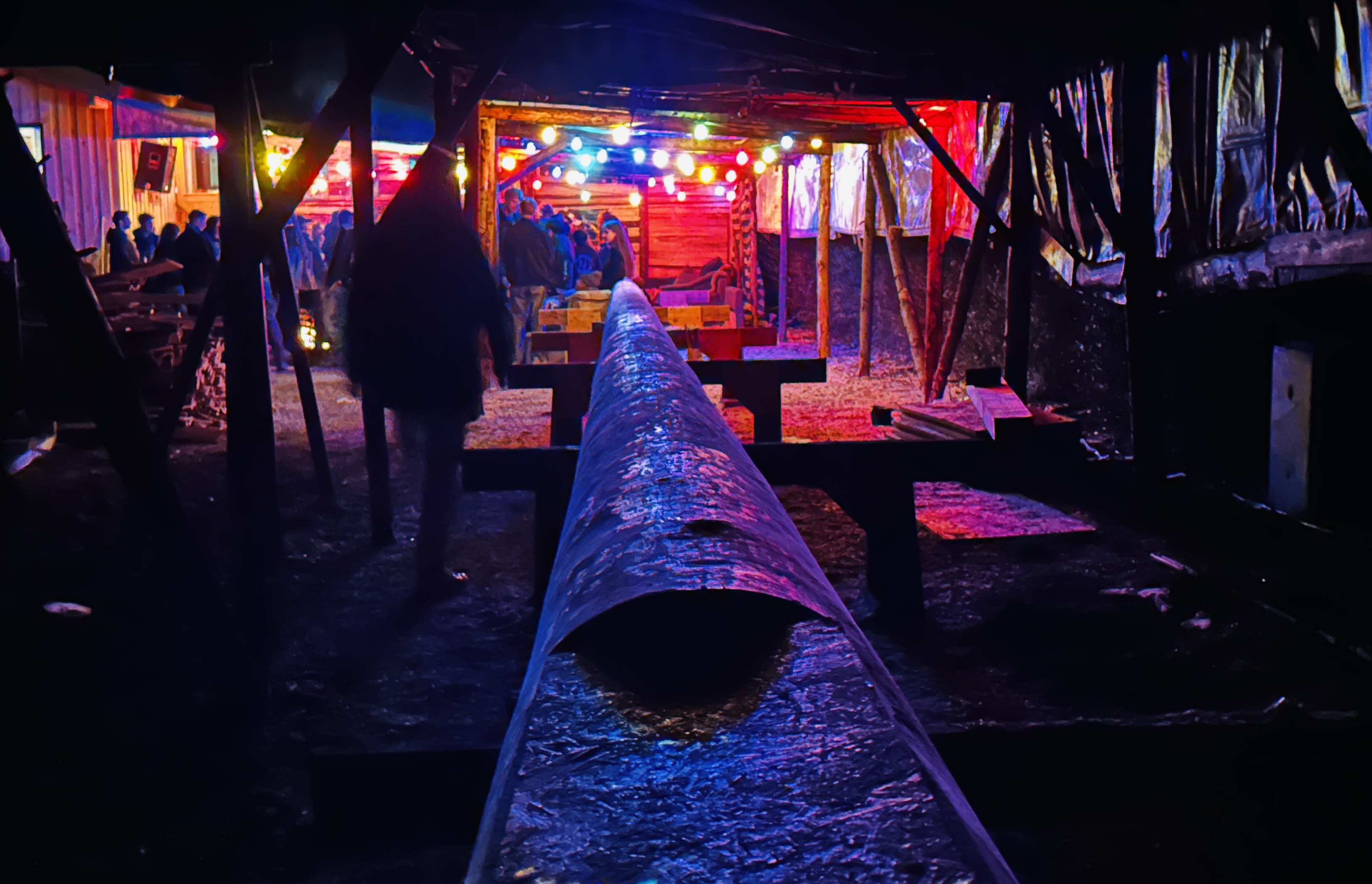 Der inzwischen aufgestellte, schnurgerade Farchner Baum bei der zurückliegenden Maibaumwache im Garten vom “Auf der Lüften”