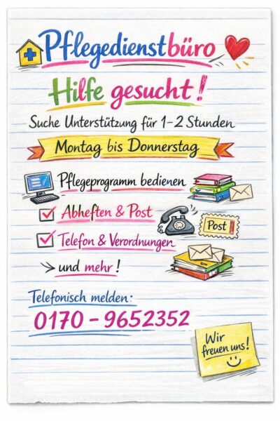 • Bürohilfe für Pflegedienst gesucht